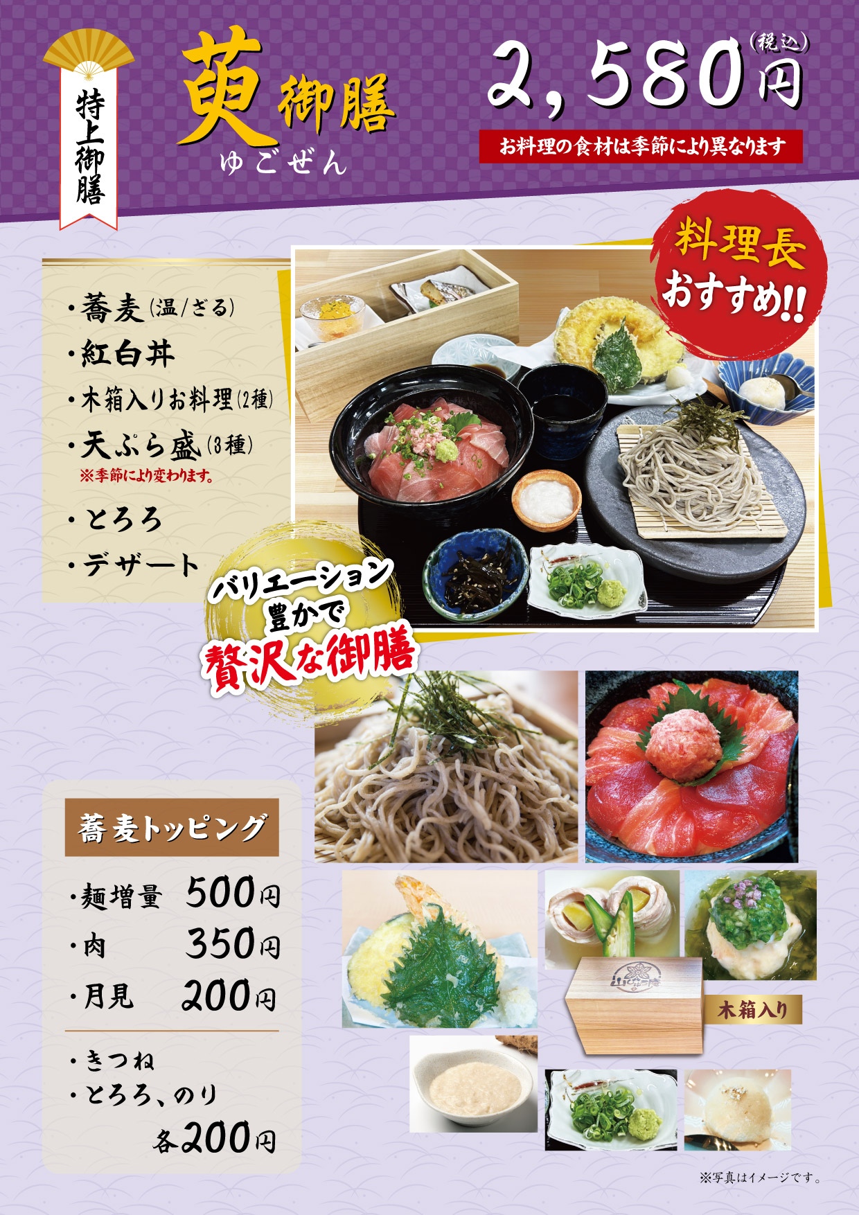 ※メニュー写真はイメージです。お料理の食材は季節により異なります。※2025年12月30日時点のメニューです。メニューや価格が変わっている場合もあるため、詳細は店舗へおたずねください。